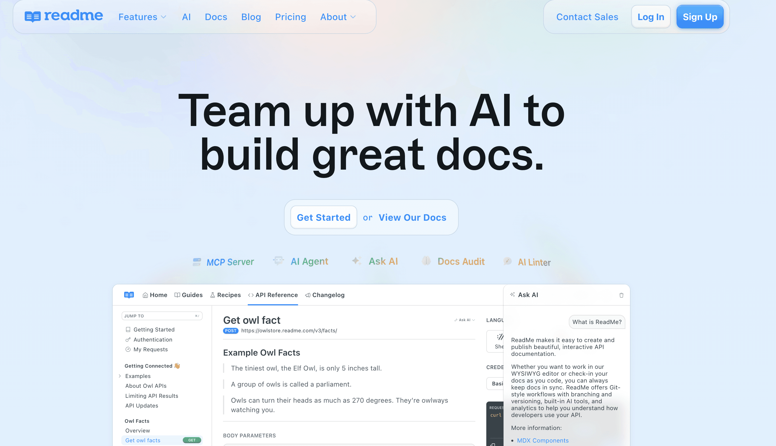 ReadMe pioneered the interactive API explorer and turned documentation into a full-blown product experience. It looks expensive, and it is expensive.