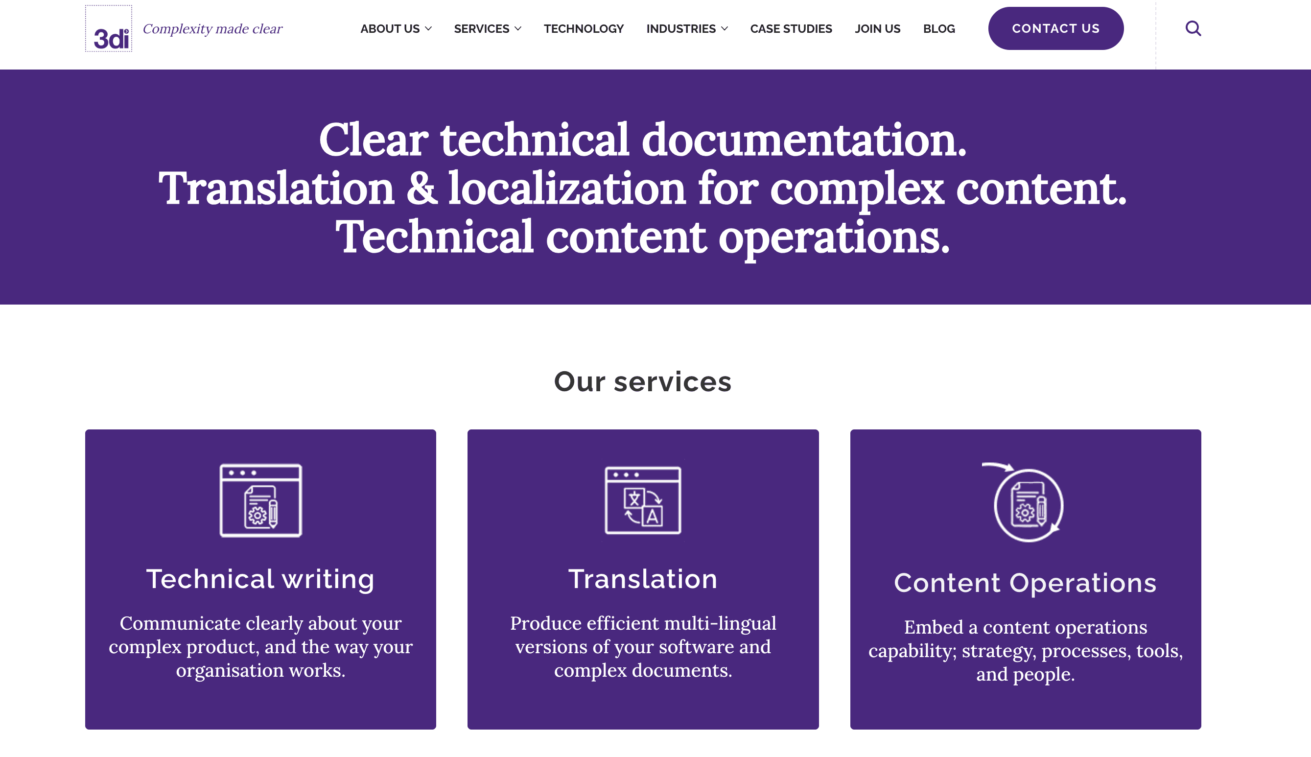 3DI Information Solutions is a technical communication and content agency that focuses heavily on technical writing, content ops, and translation or localisation. They’ve been established since 2002, with 23 years of experience in the field and over 300 customers. They’re also known for working with various industries, including telecommunications, software development, robotics amongst others.